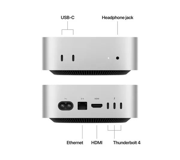 The new Mac mini packs incredible performance into a compact 5x5-inch frame — now more powerful and more compact than ever. Optimized for Apple Intelligence and redesigned around Apple silicon, it features the lightning-fast M4 chip that unlocks next-level performance. Plus, it's loaded with high-speed ports, both front and back, for maximum connectivity.
