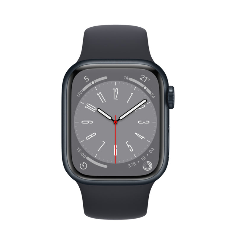 Built with a stainless steel frame, sapphire crystal back, and glass front, the Apple Watch Series 8 delivers premium durability and style. It measures 45 × 38 × 10.7 mm and weighs 51.5 g, offering a sleek and comfortable fit.