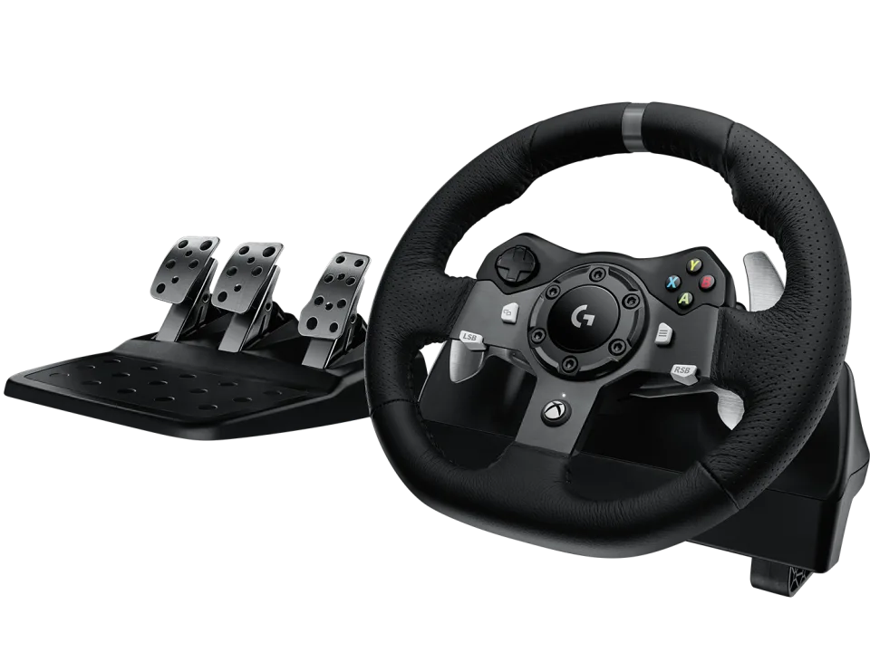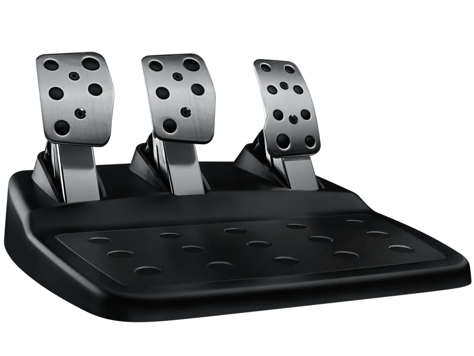 Immersive driving simulation comes to life in the details. Dual-motor force feedback makes you feel every tire slip and terrain change. Solid steel ball bearings in the wheel shaft give weight and durability. Stainless steel paddle shifters and floor pedals apply precision force. Hand-stitched leather covered wheel makes every car luxury. Helical gearing delivers smooth, quiet operation.