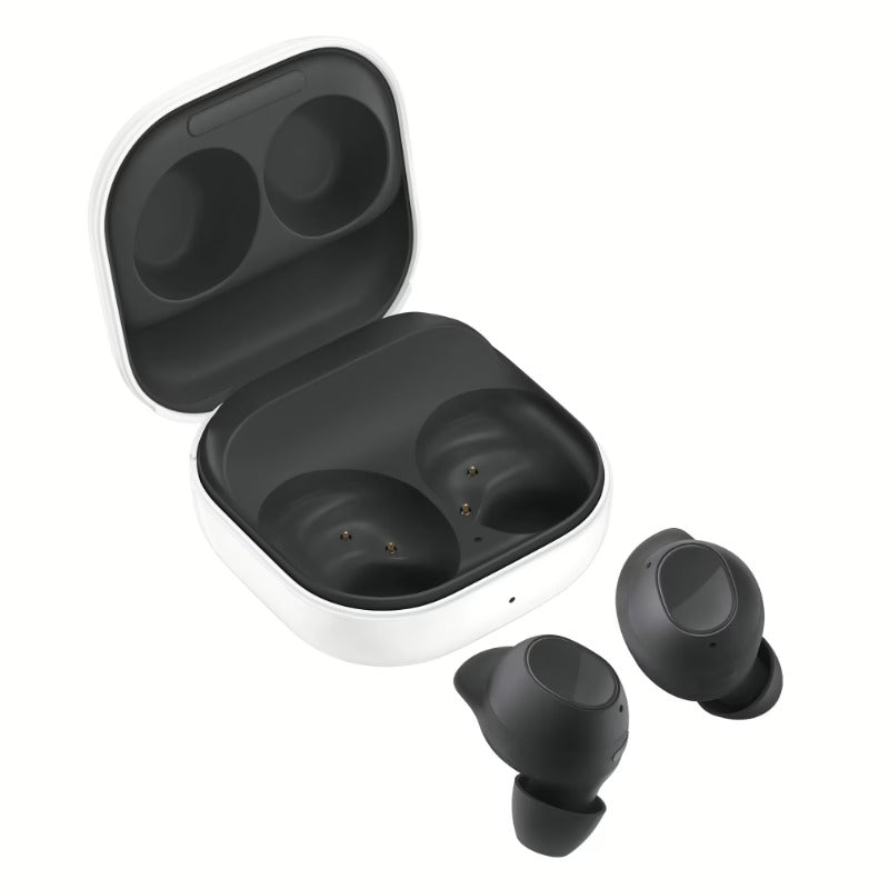 Samsung Galaxy Buds FE designed for comfort and shaped for easy fit. They come in two colors that fit your lifestyle: White and Graphite. Galaxy Buds FE are sleek and versatile, with an IPX2 water-resistance rating (water and dust proof), come with ANC, and have a deep powerful sound output that you will find great for your audio sound listening experience.